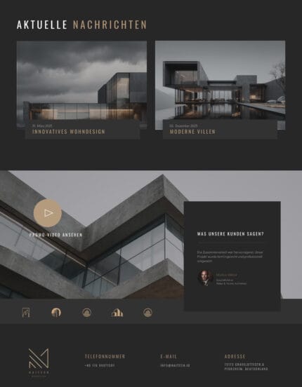 3.500,00 €Dieses Webdesign eignet sich für Architekten, Planungsbüros und Bauunternehmen, die ihre Projekte und Dienstleistungen online präsentieren möchten. Es bietet eine klare Struktur für Referenzen, Leistungen und Kontaktaufnahme mit Fokus auf modernes Design und Benutzerfreundlichkeit.