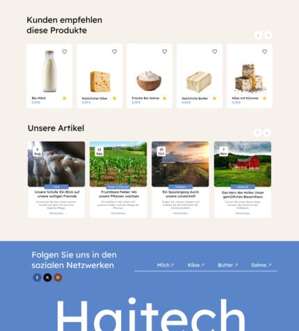 4.500,00 €Dieses Webdesign eignet sich für Höfe, Bio-Molkereien und regionale Produzenten, die ihre Produkte und Philosophie online präsentieren möchten. Es kombiniert E-Commerce-Funktionalität mit authentischer Darstellung von Hof und Tradition.